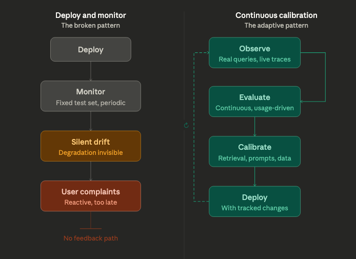 Addressing this requires a shift in how RAG systems are operated. Instead of treating them as deploy-and-monitor systems, teams need to think in terms of continuous calibration. This means integrating evaluation with observability, tracking how retrieval, prompts, and outputs evolve over time, and establishing feedback loops that reflect real-world usage. Degradation is not an anomaly — it is an expected property of systems built on changing data and probabilistic components.